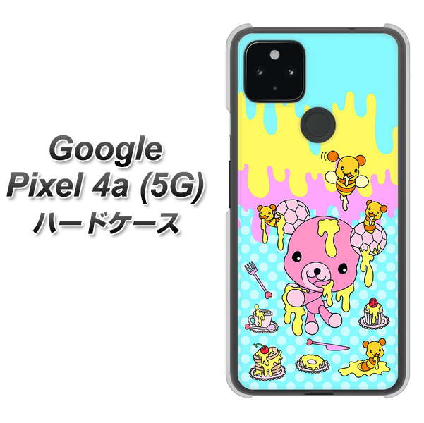 Google Pixel 4a (5G) 高画質仕上げ 背面印刷 ハードケース【AG821 ハニベア(水玉水色)】