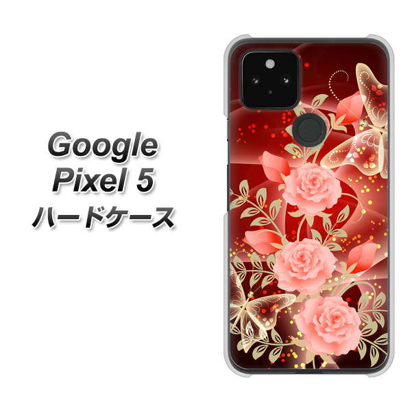 Google Pixel 5 高画質仕上げ 背面印刷 ハードケース【VA824 魅惑の蝶とピンクのバラ】