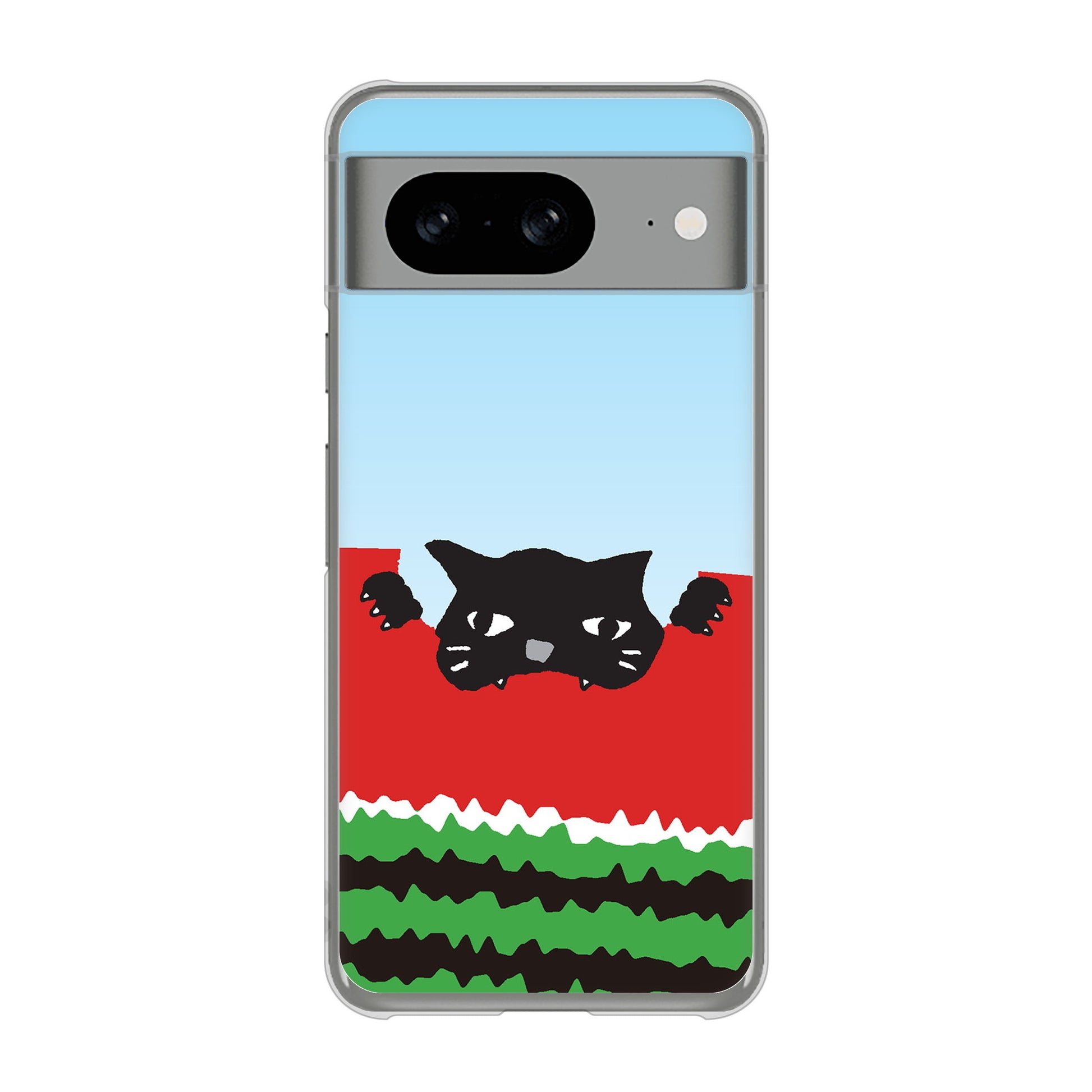 Google Pixel 8 高画質仕上げ 背面印刷 ハードケースすいかをかじるネコ
