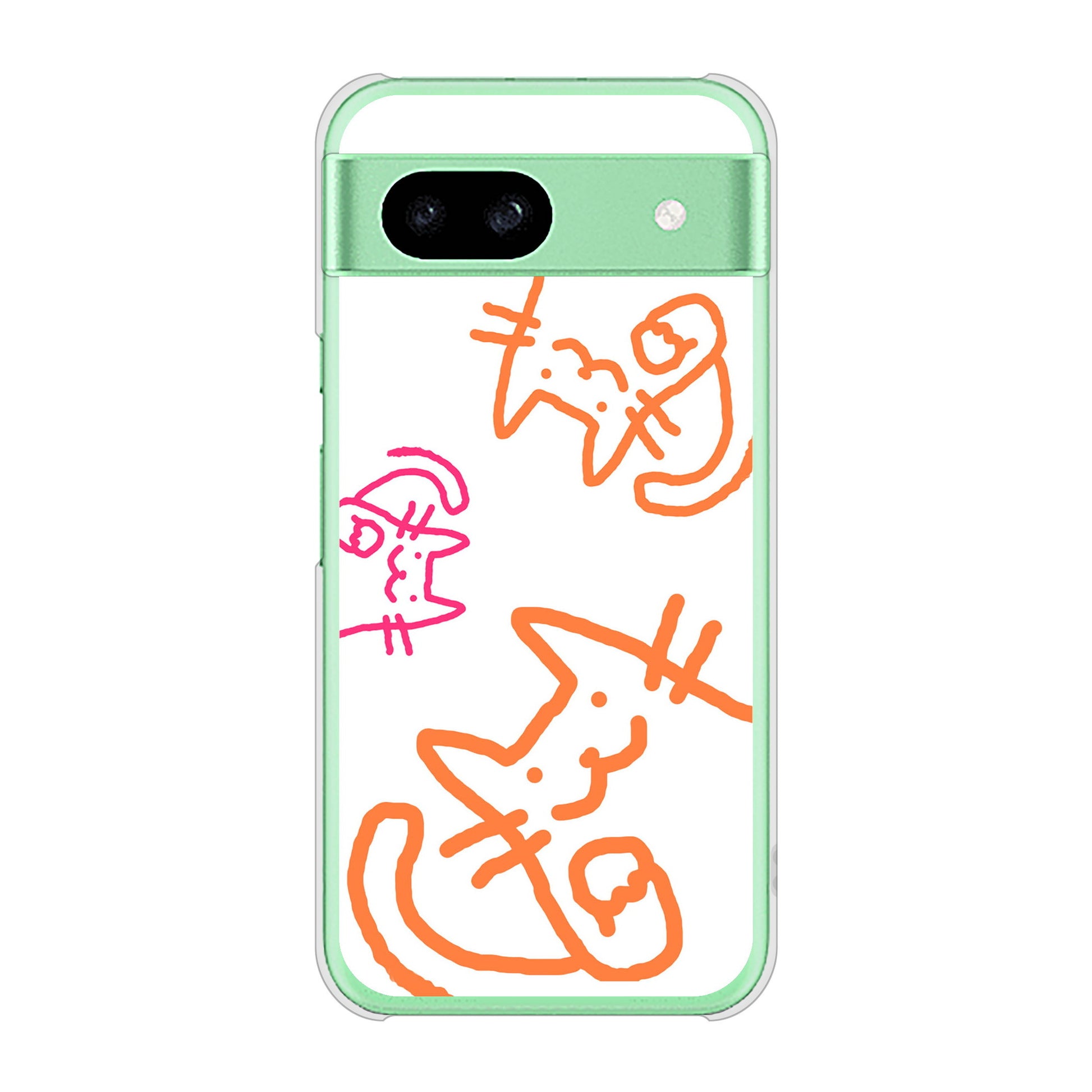Google Pixel 8a 高画質仕上げ 背面印刷 ハードケース 【1098 手まねきする3匹のネコ】