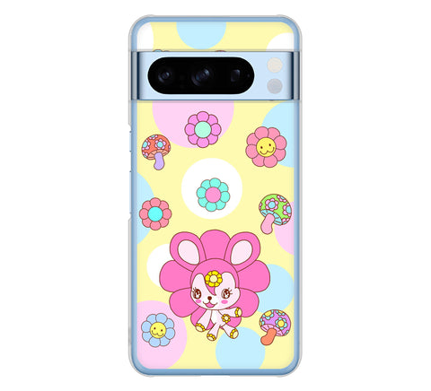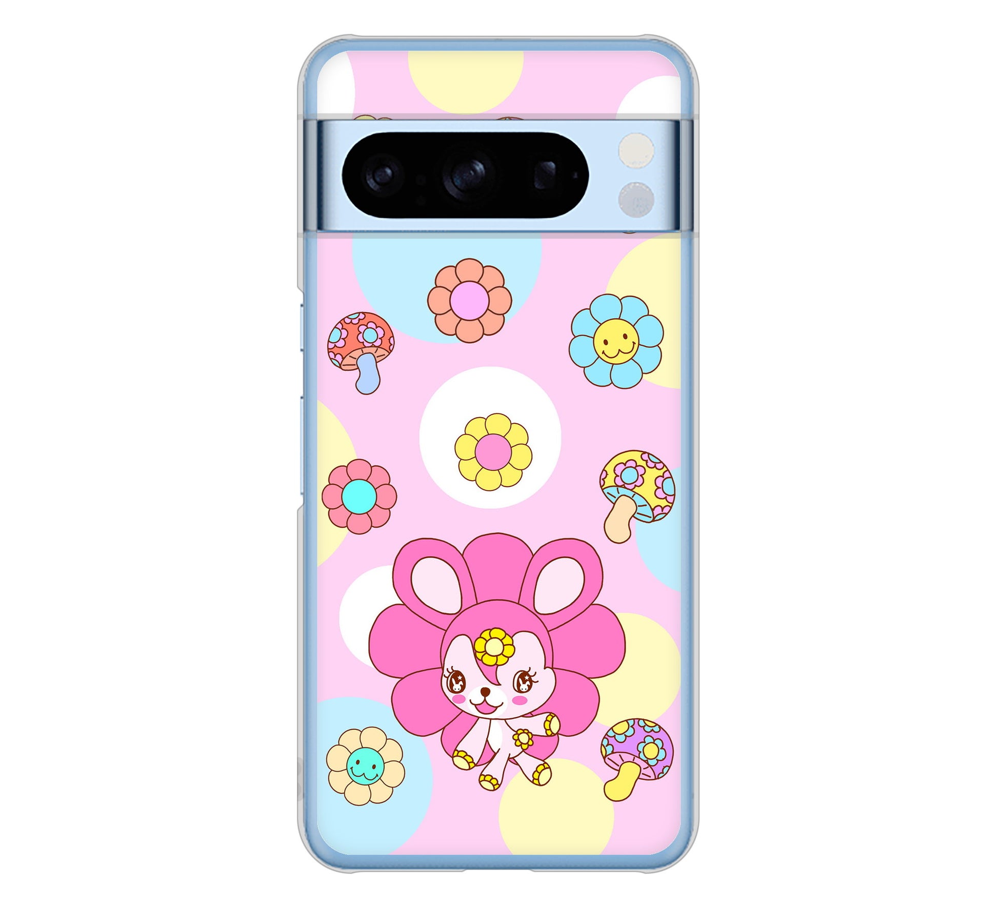 Google Pixel 8 Pro 高画質仕上げ 背面印刷 ハードケースむかいあぐる フラワーうさぎのフラッピョン