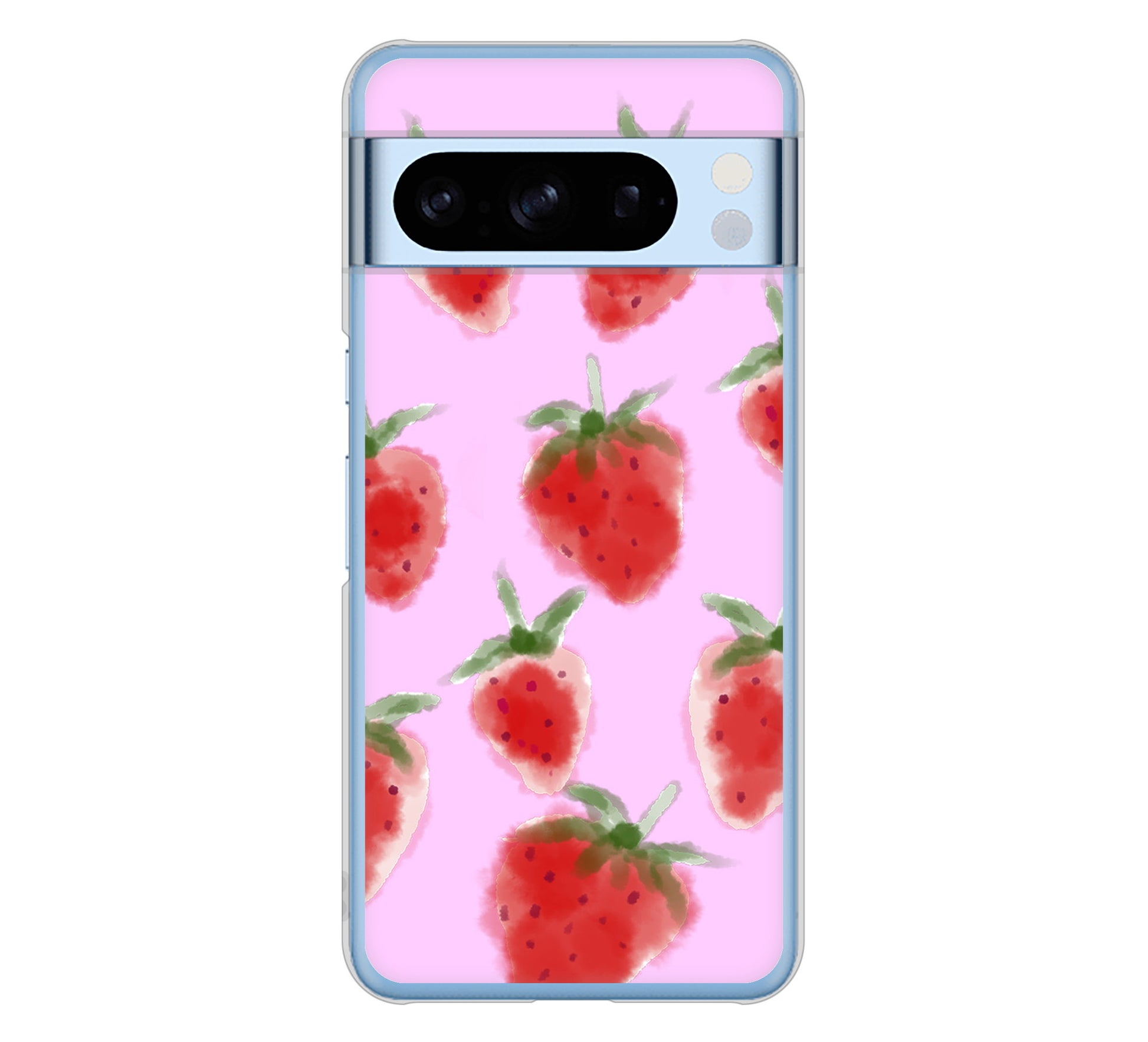 Google Pixel 8 Pro 高画質仕上げ 背面印刷 ハードケースイチゴ 水彩