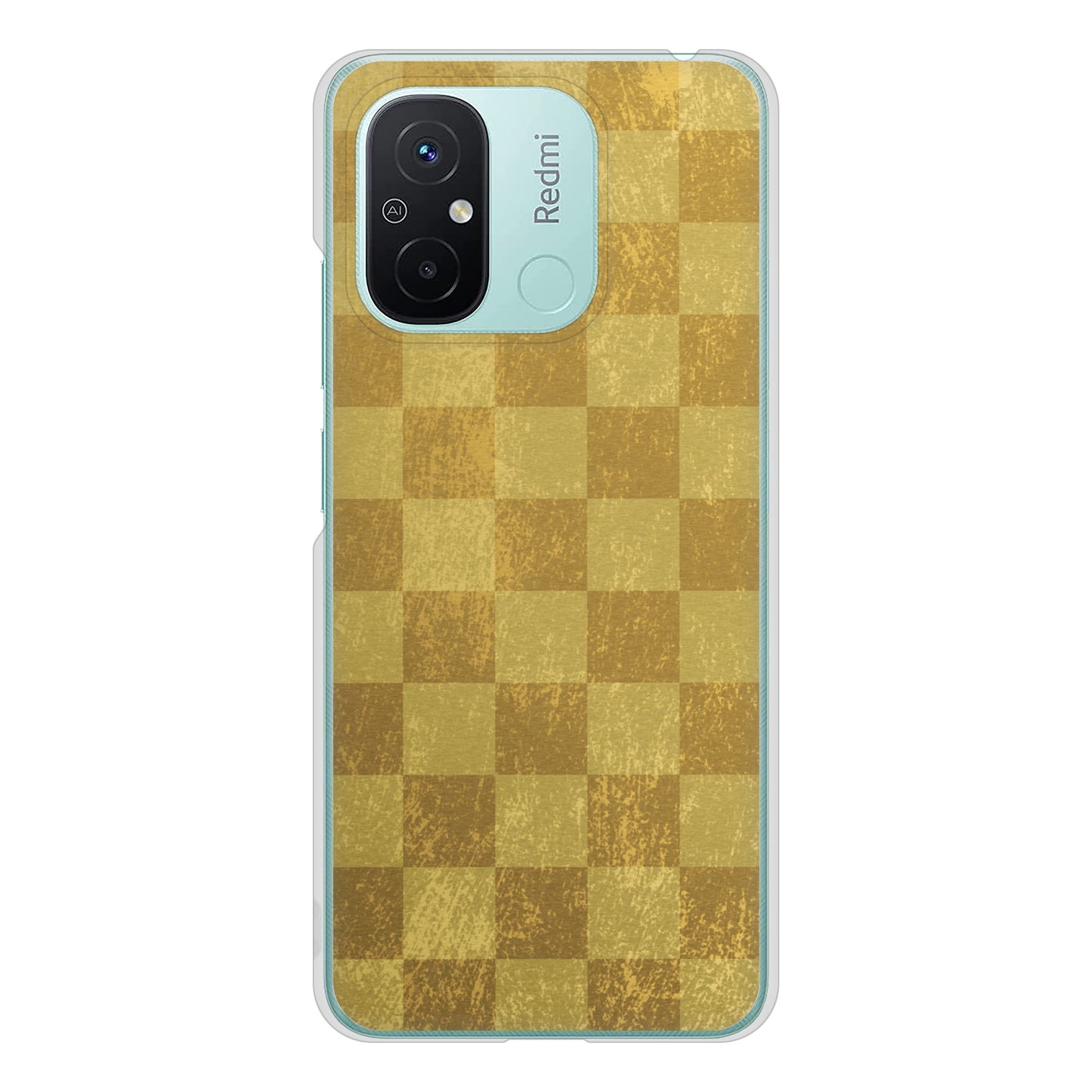 Xiaomi Redmi 12C 高画質仕上げ 背面印刷 ハードケース 【619 市松模様-金(骨董風に傷んだイメージ)】
