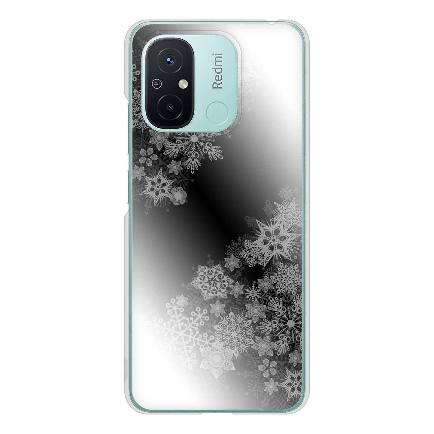 Xiaomi Redmi 12C 高画質仕上げ 背面印刷 ハードケース 【YJ340 モノトーン 雪の結晶 】