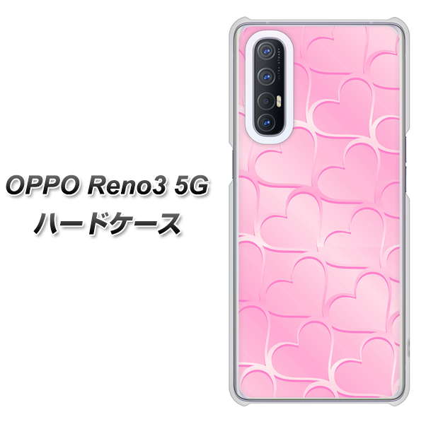 SoftBank OPPO Reno3 5G 高画質仕上げ 背面印刷 ハードケース【1342 かくれハート(ピンク)】
