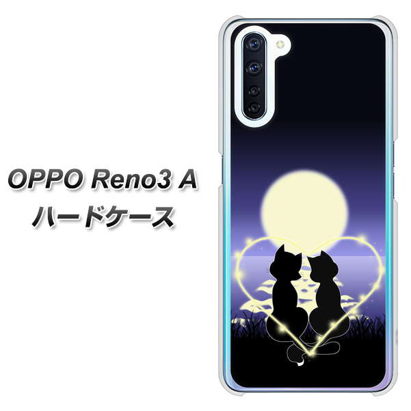 SIMフリー OPPO Reno3 A 高画質仕上げ 背面印刷 ハードケース【604 月明かりの恋ネコ】