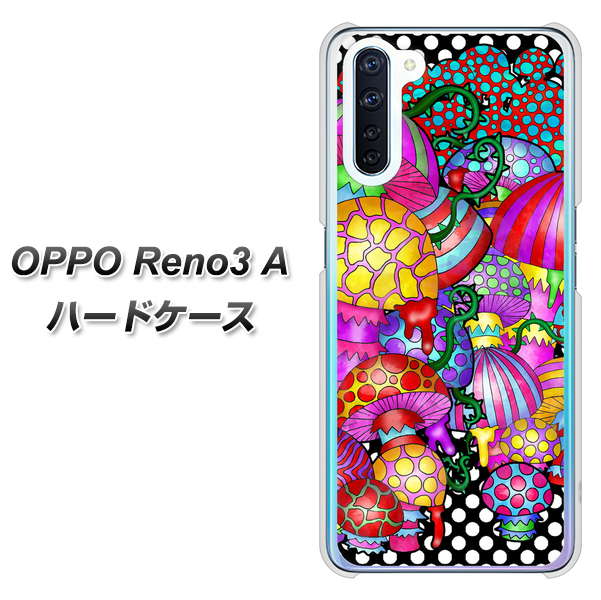 SIMフリー OPPO Reno3 A 高画質仕上げ 背面印刷 ハードケース【AG807 きのこ(黒)】