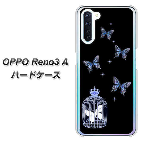 SIMフリー OPPO Reno3 A 高画質仕上げ 背面印刷 ハードケース【AG812 蝶の王冠鳥かご(黒×青)】