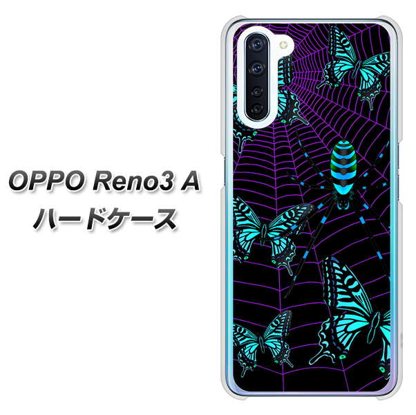 SIMフリー OPPO Reno3 A 高画質仕上げ 背面印刷 ハードケース【AG830 蜘蛛の巣に舞う蝶(青)】