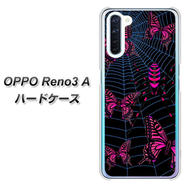 SIMフリー OPPO Reno3 A 高画質仕上げ 背面印刷 ハードケース【AG831 蜘蛛の巣に舞う蝶(赤)】