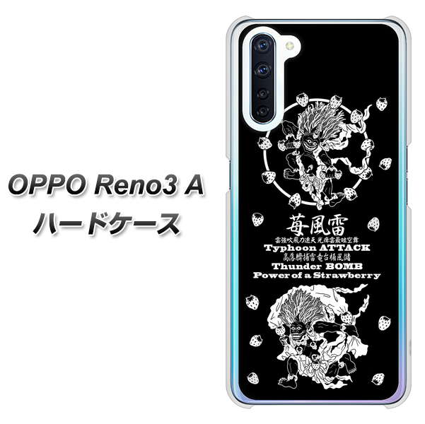 SIMフリー OPPO Reno3 A 高画質仕上げ 背面印刷 ハードケース【AG839 苺風雷神(黒)】