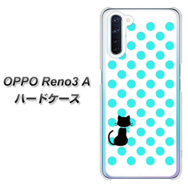 SIMフリー OPPO Reno3 A 高画質仕上げ 背面印刷 ハードケース【EK809 ネコとシンプル ライトブルー】
