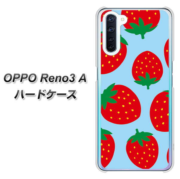 SIMフリー OPPO Reno3 A 高画質仕上げ 背面印刷 ハードケース【SC821 大きいイチゴ模様レッドとブルー】