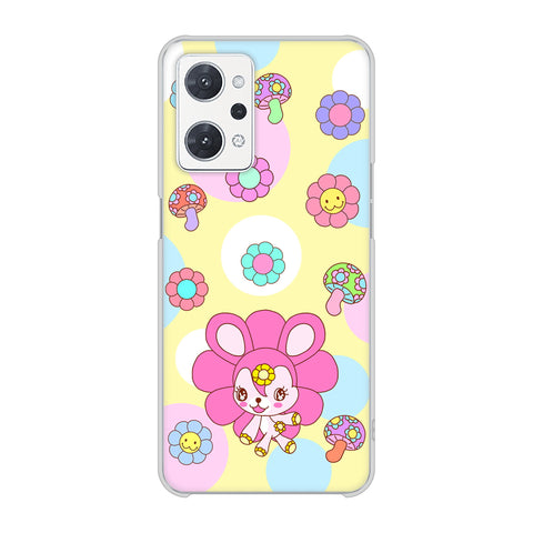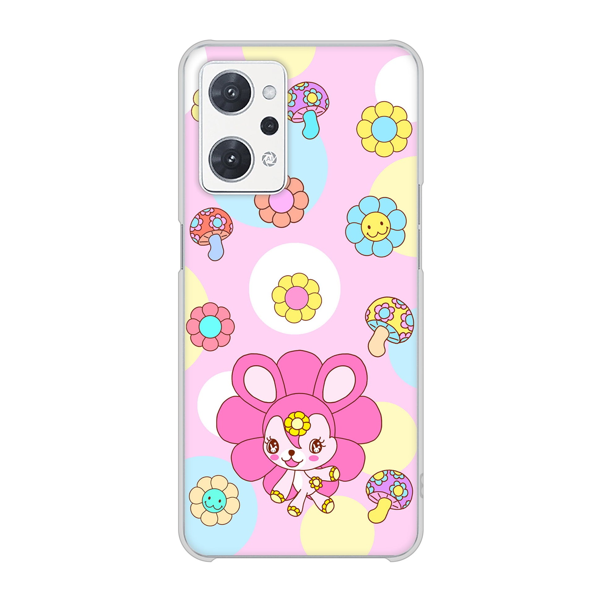 OPPO reno9 A 高画質仕上げ 背面印刷 ハードケースむかいあぐる フラワーうさぎのフラッピョン
