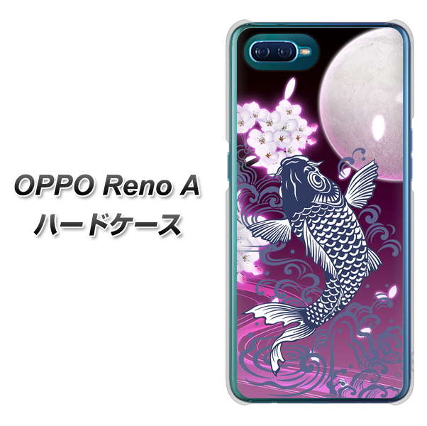 OPPO Reno A 高画質仕上げ 背面印刷 ハードケース【1029 月と鯉(紫)】