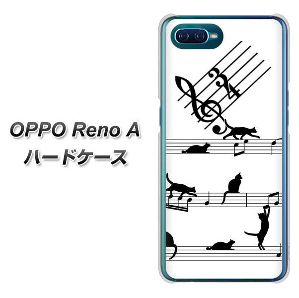 OPPO Reno A 高画質仕上げ 背面印刷 ハードケース【1112 音符とじゃれるネコ2】