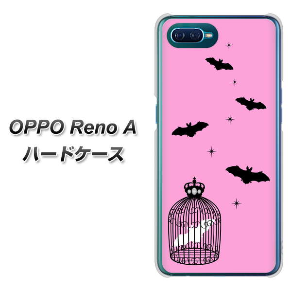 OPPO Reno A 高画質仕上げ 背面印刷 ハードケース【AG808 こうもりの王冠鳥かご(ピンク×黒)】