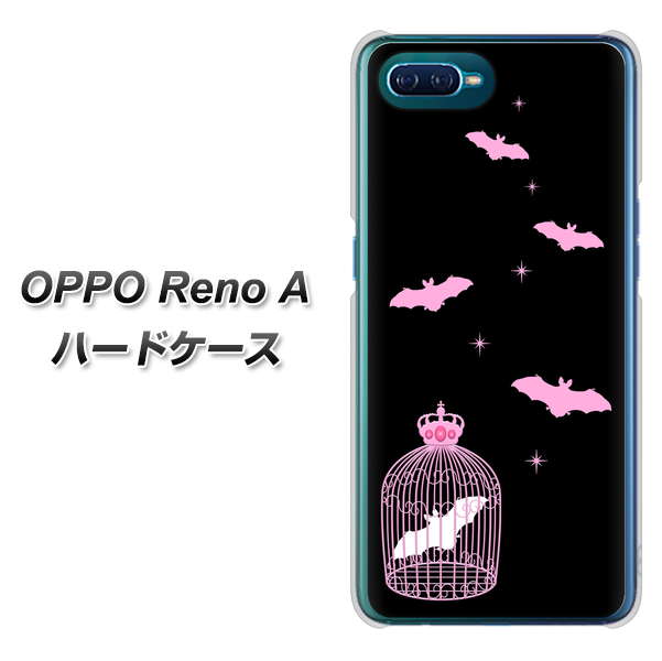 OPPO Reno A 高画質仕上げ 背面印刷 ハードケース【AG809 こうもりの王冠鳥かご(黒×ピンク)】
