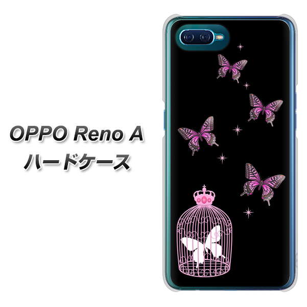OPPO Reno A 高画質仕上げ 背面印刷 ハードケース【AG811 蝶の王冠鳥かご(黒×ピンク)】