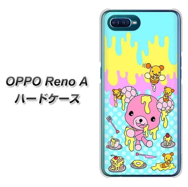 OPPO Reno A 高画質仕上げ 背面印刷 ハードケース【AG821 ハニベア(水玉水色)】