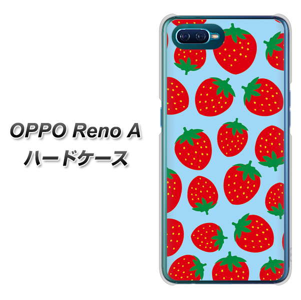 OPPO Reno A 高画質仕上げ 背面印刷 ハードケース【SC814 小さいイチゴ模様 レッドとブルー】