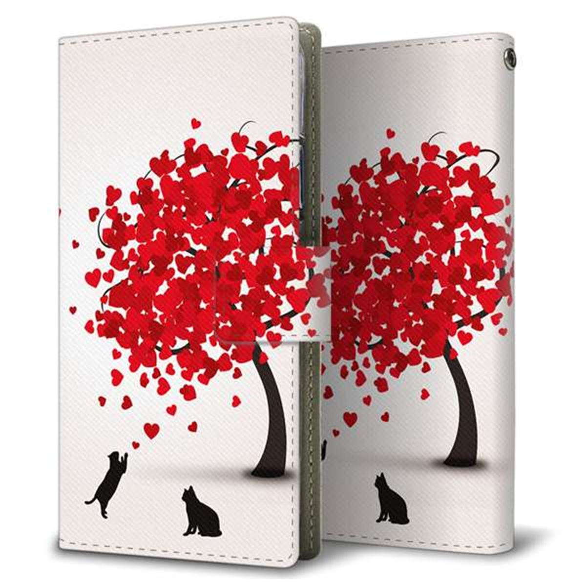 docomo ギャラクシー ノート9 SC-01L 画質仕上げ プリント手帳型ケース(薄型スリム)【EK915 二匹のネコとハートの木】