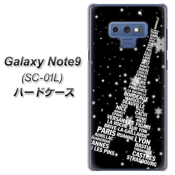 docomo ギャラクシー ノート9 SC-01L 高画質仕上げ 背面印刷 ハードケース【528 エッフェル塔bk-wh】
