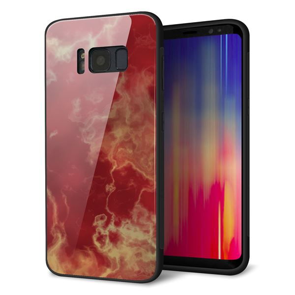 docomo ギャラクシー S8 SC-02J 強化ガラス&TPUスマホケース ガラプリ【KM870 大理石RD】