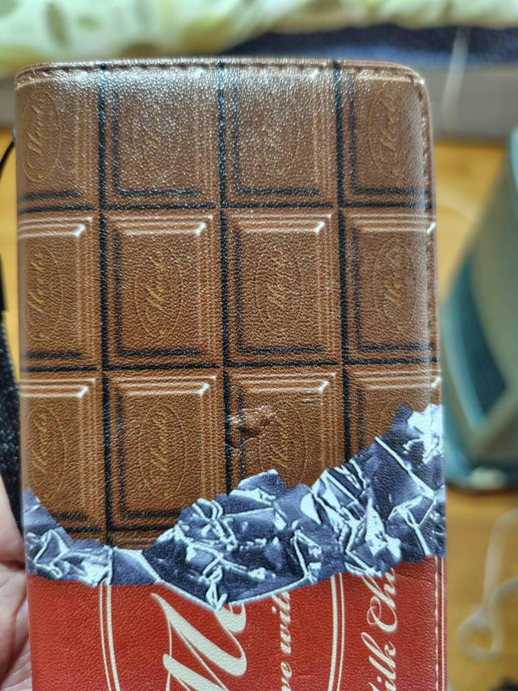 板チョコ使用のスマホカバーを購入しました。優越感で自己満足しています。友人からは「このスマホケース欲しい。何処で見つけられたのでしょうか」とか「遊び心満々なお洒落カバーですね。流石です」との声が届きました。