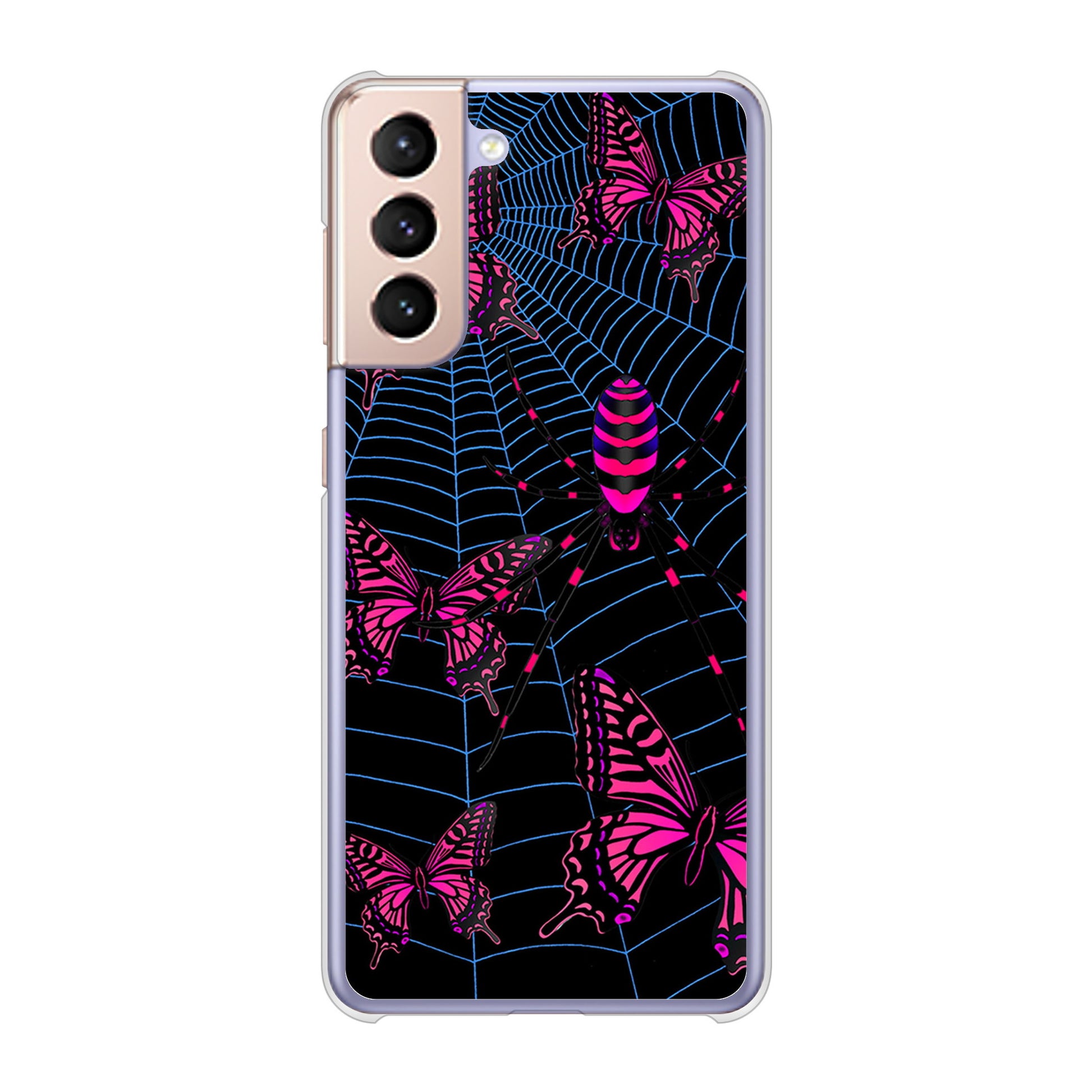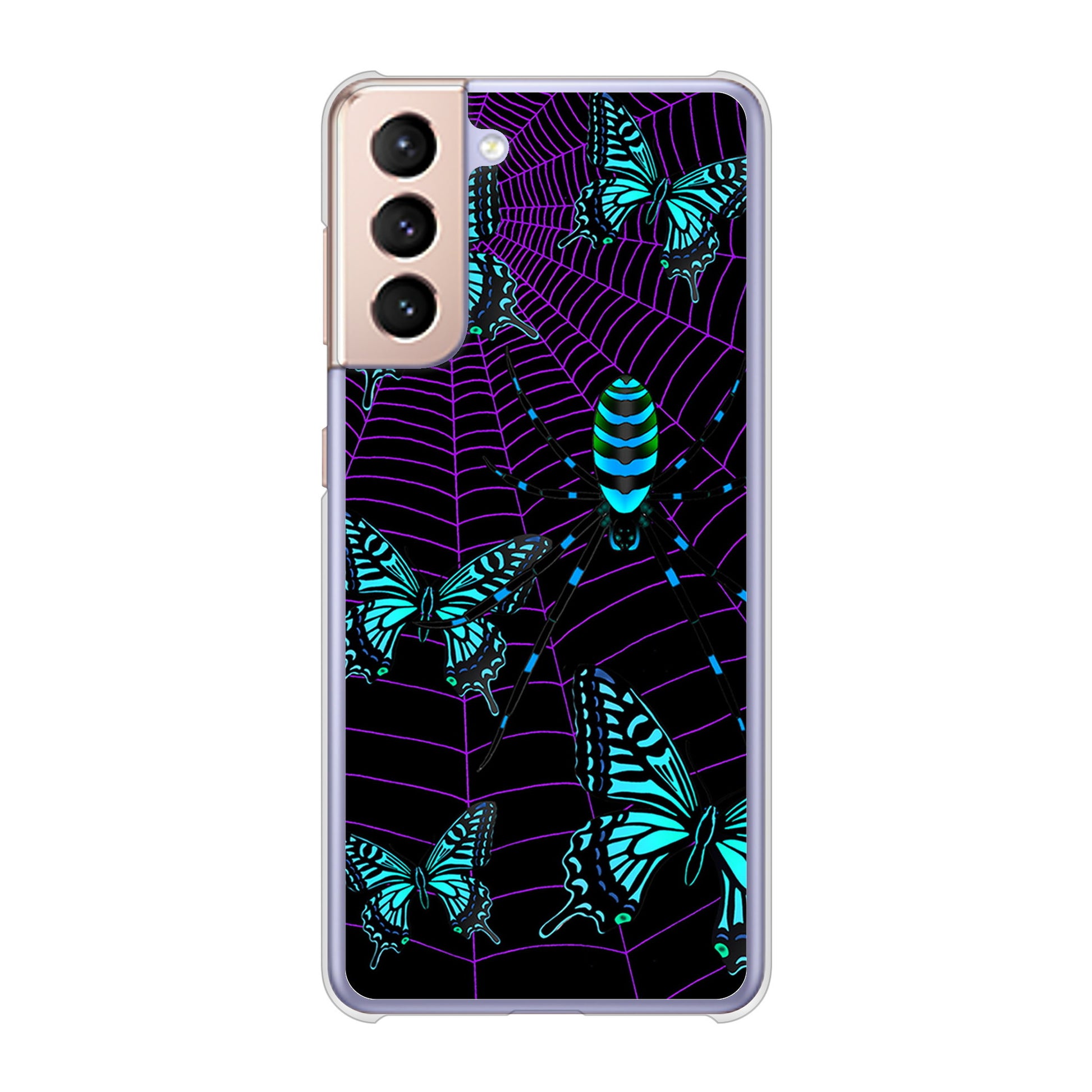 Galaxy S21 5G SC-51B docomo 高画質仕上げ 背面印刷 ハードケース むかいあぐる 蜘蛛の巣に舞う蝶