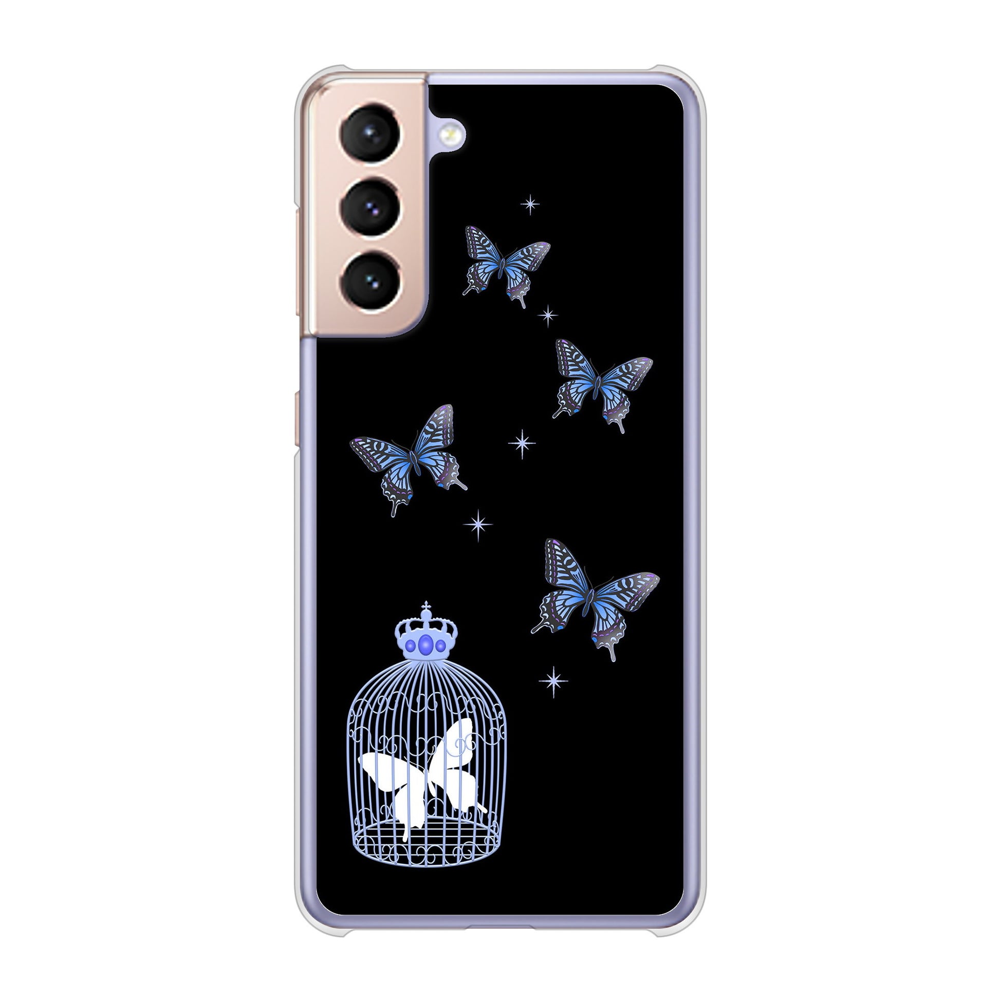 Galaxy S21 5G SC-51B docomo 高画質仕上げ 背面印刷 ハードケース むかいあぐる 蝶の王冠鳥かご