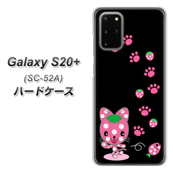 docomo ギャラクシーS20+ SC-52A 高画質仕上げ 背面印刷 ハードケース【AG820 イチゴ猫のにゃんベリー(黒)】