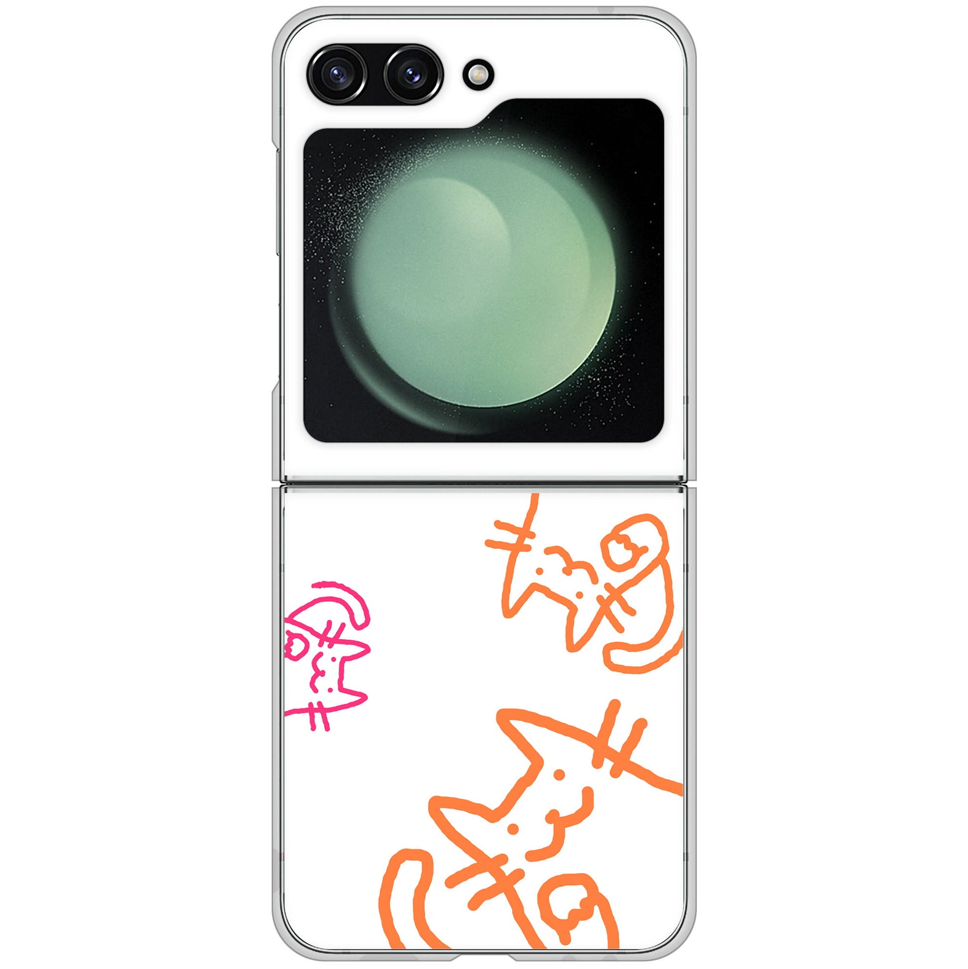 Galaxy Z Flip5 SC-54D docomo 高画質仕上げ 背面印刷 ハードケース 【1098 手まねきする3匹のネコ】