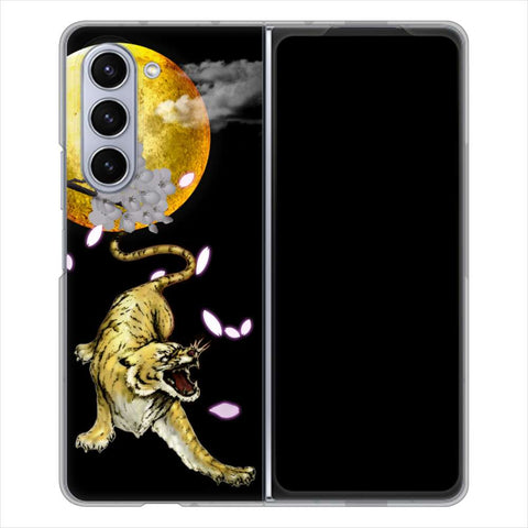 Galaxy Z Fold5 SC-55D docomo 高画質仕上げ 背面印刷 ハードケース月とタイガー