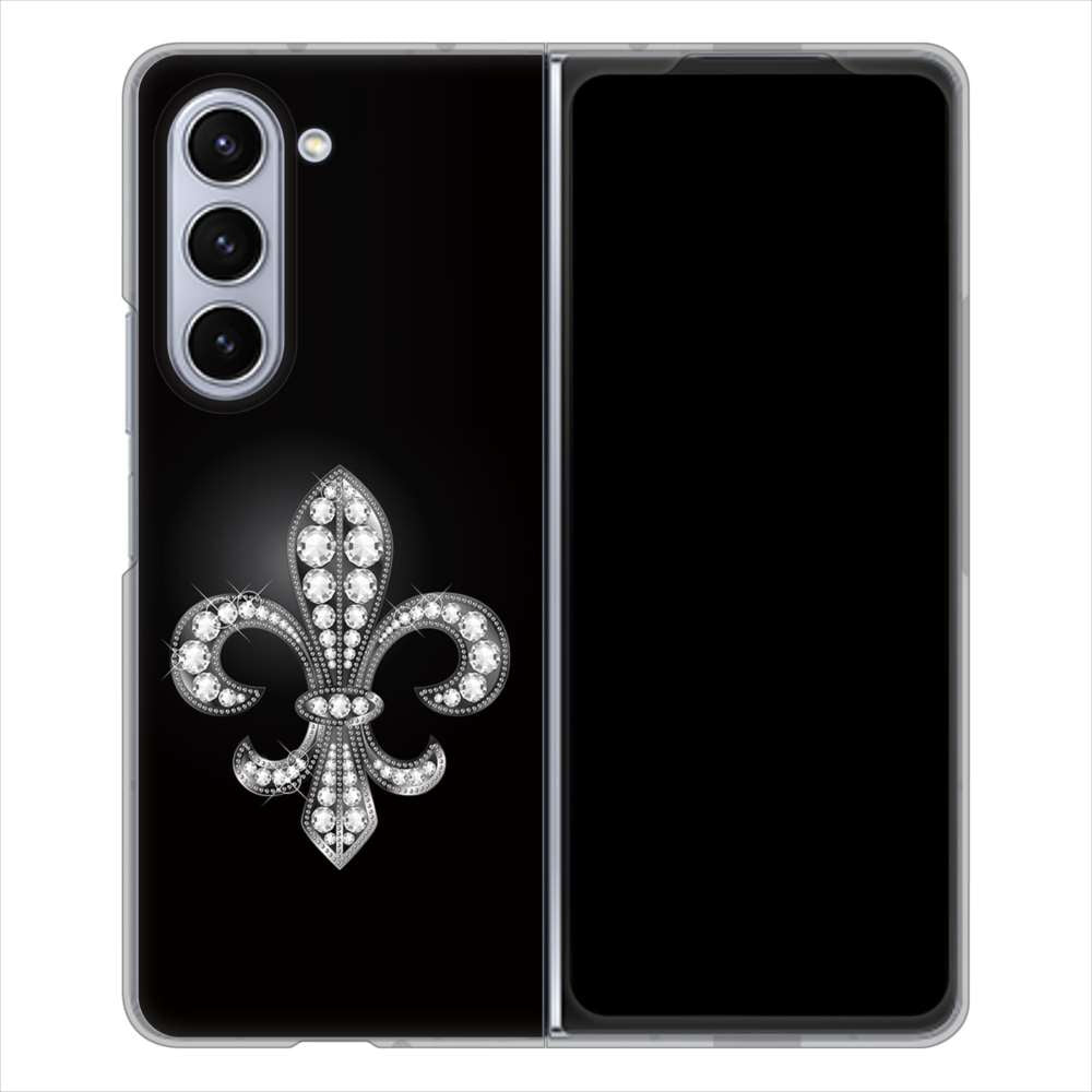 Galaxy Z Fold5 SC-55D docomo 高画質仕上げ 背面印刷 ハードケース 【042 ラインストーン風の印刷ゴージャスユリ】