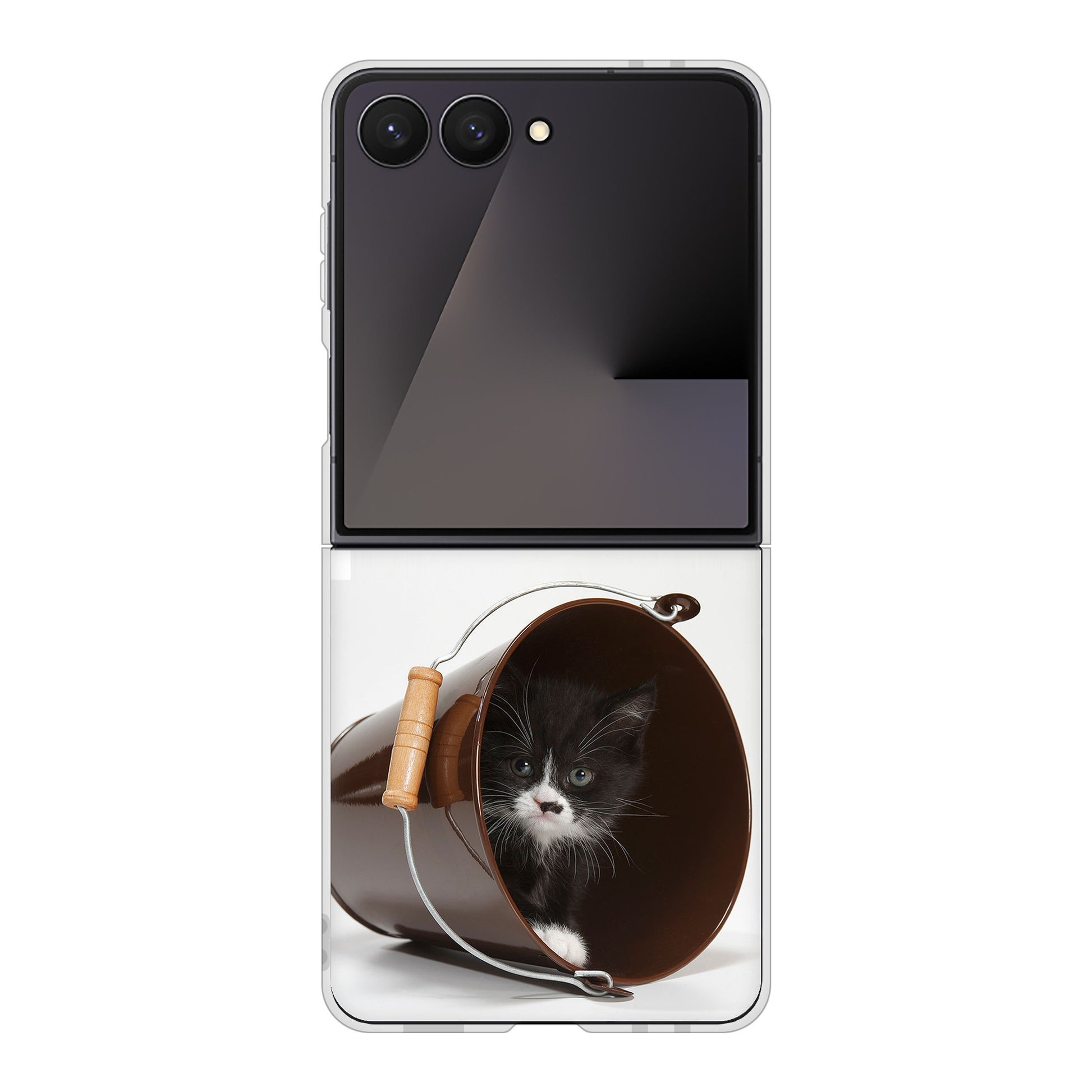 Galaxy Z Flip7 SC-55F docomo 高画質仕上げ 背面印刷 ハードケース 【VA800 ネコとバケツ】