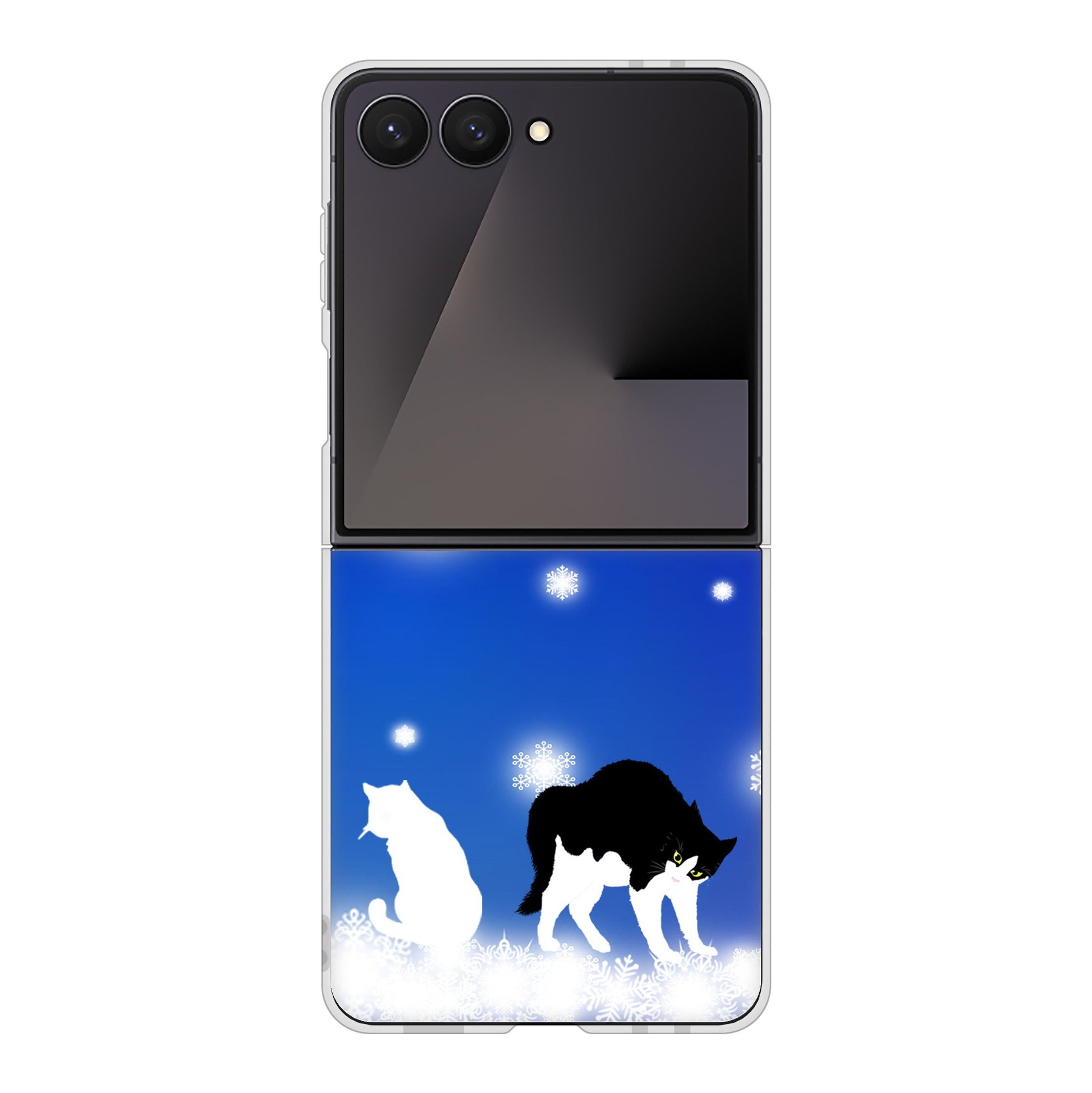 Galaxy Z Flip7 SC-55F docomo 高画質仕上げ 背面印刷 ハードケース 【YJ335 雪の結晶 はちわれ】
