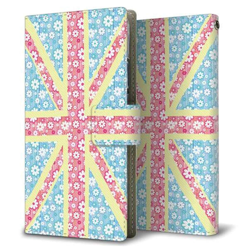 au ギャラクシーS21 5G SCG09 画質仕上げ プリント手帳型ケース(薄型スリム)【EK895 ユニオンジャックパステルフラワー】