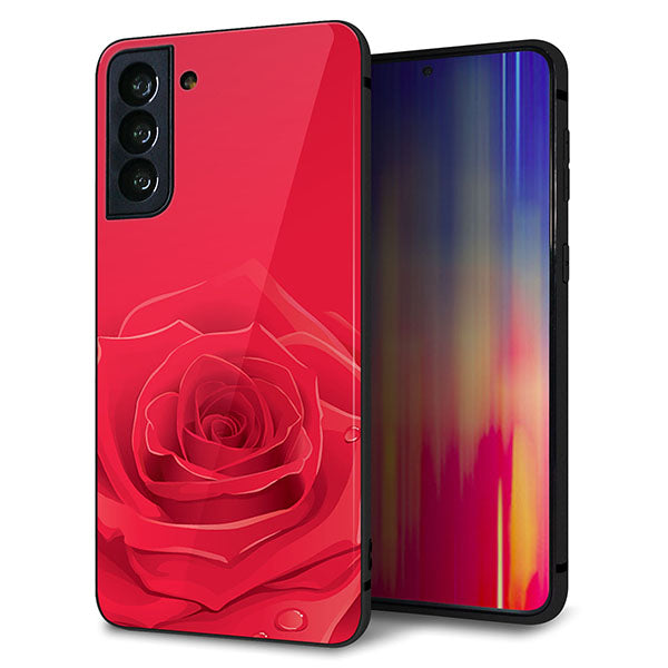 au ギャラクシーS21+ 5G SCG10 強化ガラス&TPUスマホケース ガラプリ【395 赤いバラ】