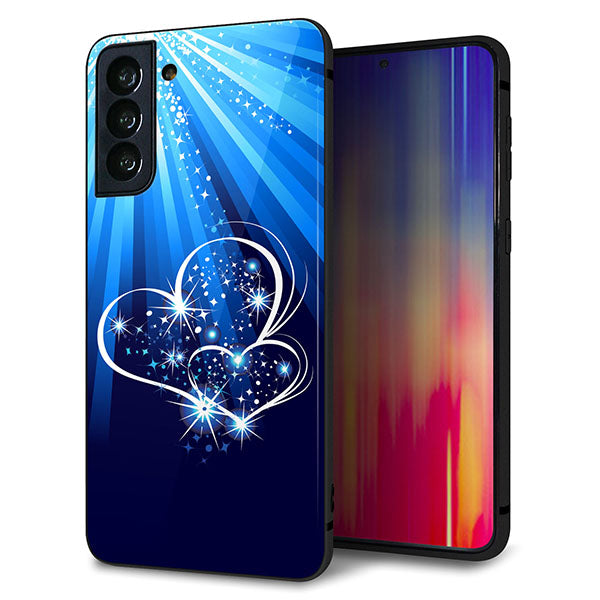 au ギャラクシーS21+ 5G SCG10 強化ガラス&TPUスマホケース ガラプリ【702 スイミングハート】