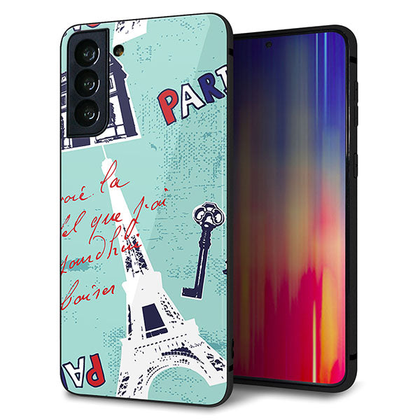 au ギャラクシーS21+ 5G SCG10 強化ガラス&TPUスマホケース ガラプリ【EK812 ビューティフルパリブルー】