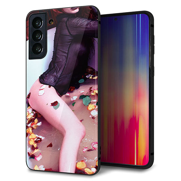 au ギャラクシーS21+ 5G SCG10 強化ガラス&TPUスマホケース ガラプリ【KM885 バラ風呂】