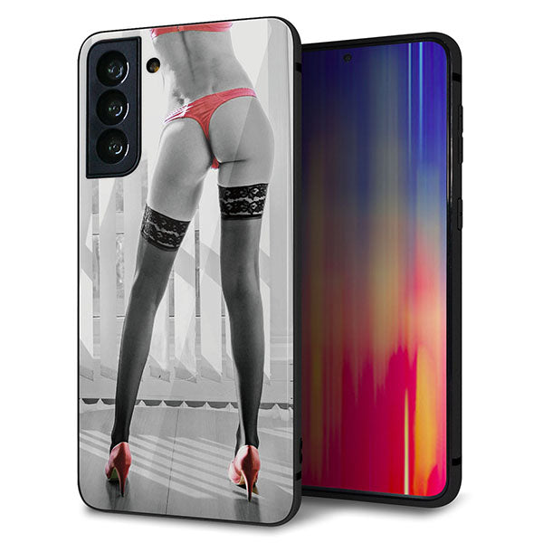 au ギャラクシーS21+ 5G SCG10 強化ガラス&TPUスマホケース ガラプリ【KM889 ハイヒール】