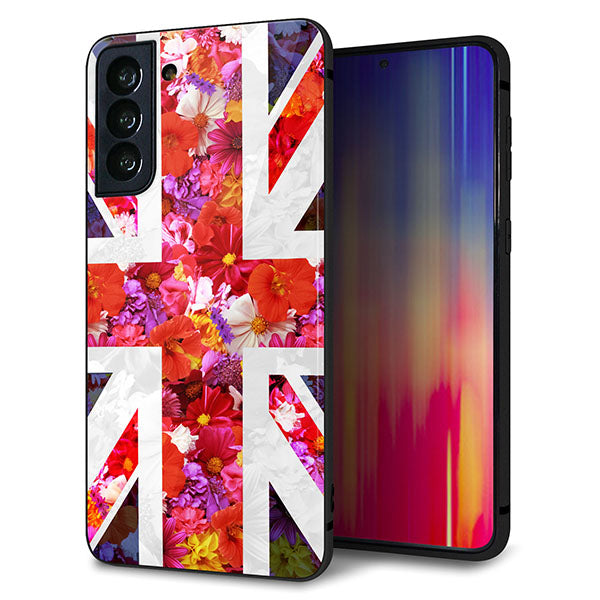 au ギャラクシーS21+ 5G SCG10 強化ガラス&TPUスマホケース ガラプリ【SC801 ユニオンジャック リアルフラワー】