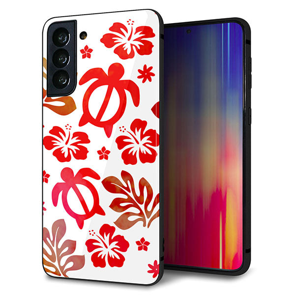 au ギャラクシーS21+ 5G SCG10 強化ガラス&TPUスマホケース ガラプリ【SC881 ハワイアンアロハホヌ(レッド)】