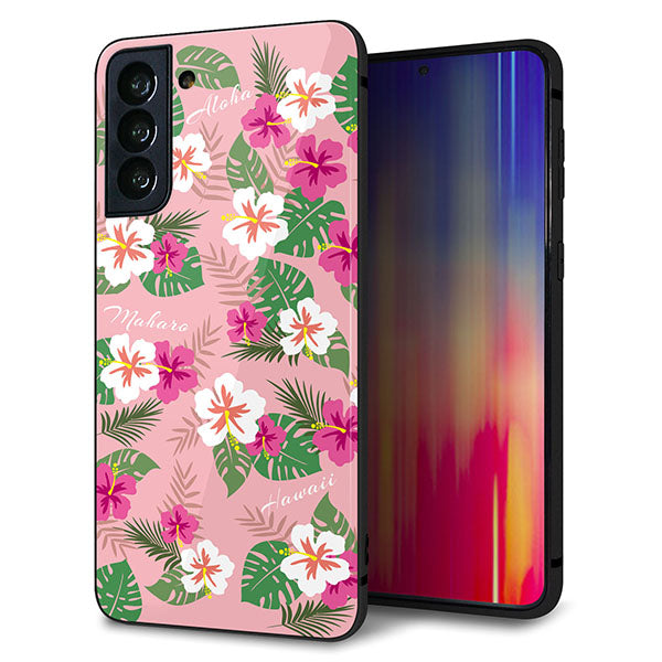 au ギャラクシーS21+ 5G SCG10 強化ガラス&TPUスマホケース ガラプリ【SC882 ハワイアンアロハレトロ(ピンク)】