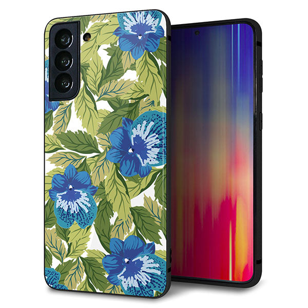 au ギャラクシーS21+ 5G SCG10 強化ガラス&TPUスマホケース ガラプリ【SC896 ボタニカル ブルー&リーフ】