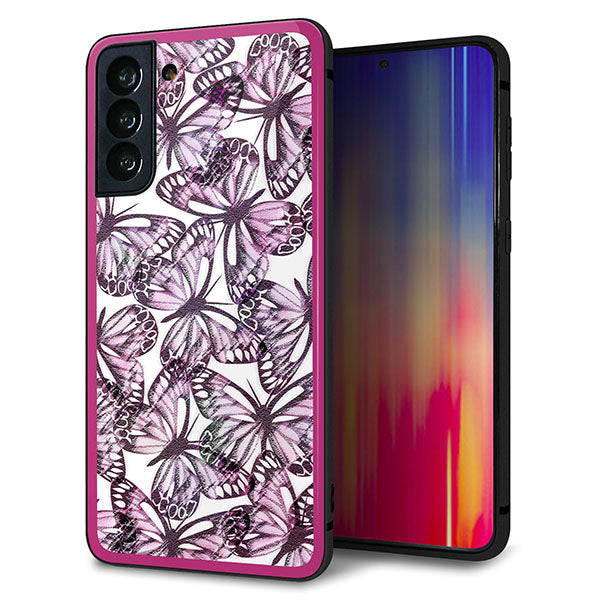 au ギャラクシーS21+ 5G SCG10 強化ガラス&TPUスマホケース ガラプリ【SC904 ガーデンバタフライ ピンク】