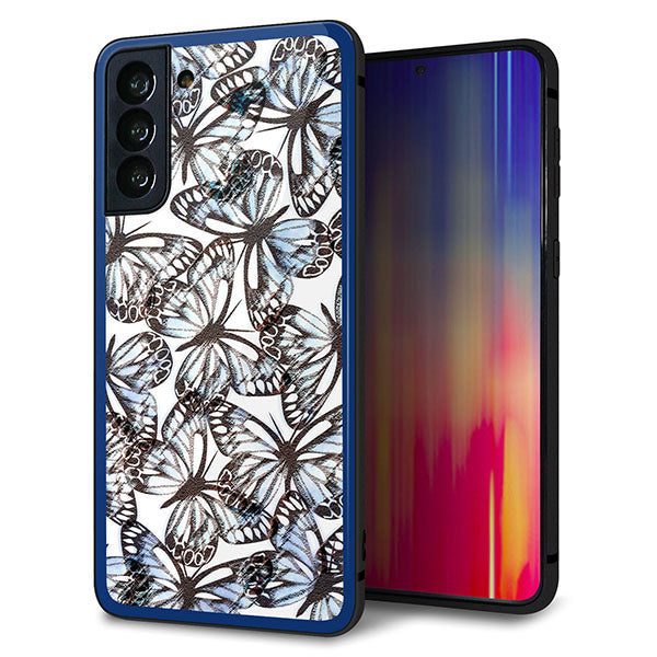 au ギャラクシーS21+ 5G SCG10 強化ガラス&TPUスマホケース ガラプリ【SC906 ガーデンバタフライ ブルー】
