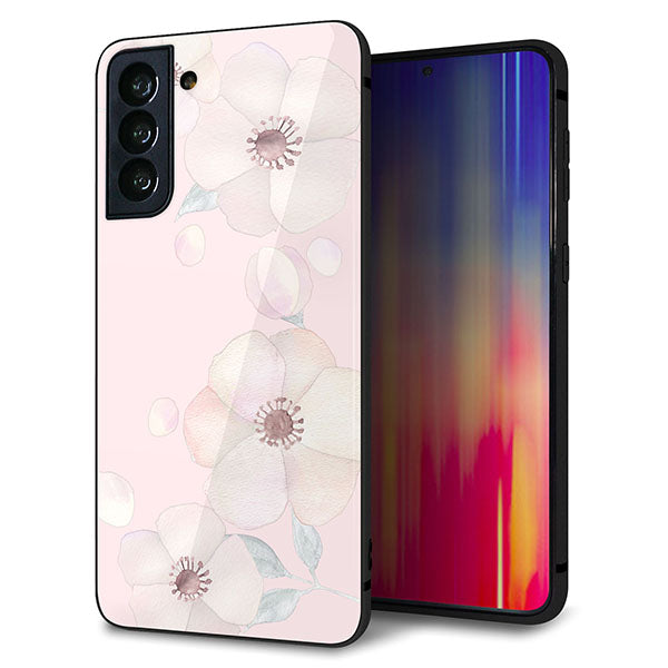au ギャラクシーS21+ 5G SCG10 強化ガラス&TPUスマホケース ガラプリ【SC949 ドゥ・フルール(オフピンク)】